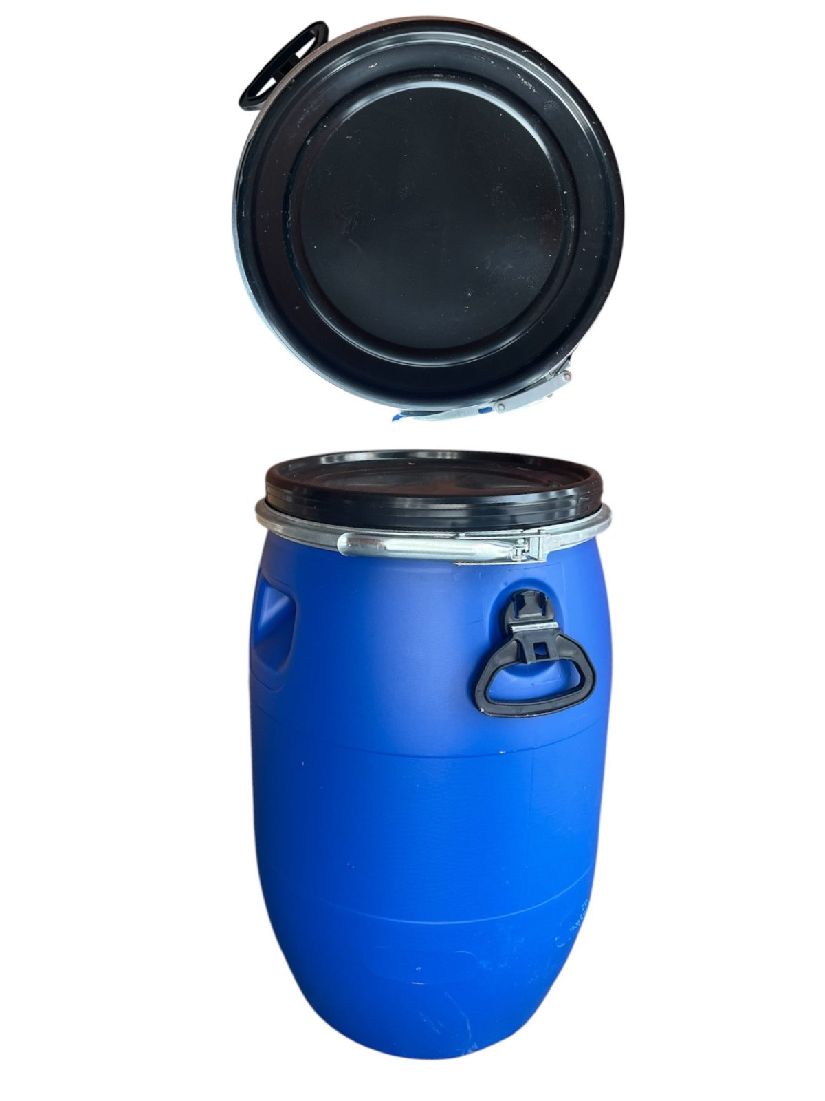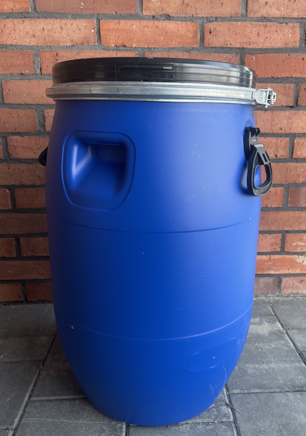 Praktyczna i solidna beczka plastikowa o pojemności 60 litrów, gotowa do natychmiastowego użycia. Pochodzi z branży spożywczej, a jej zawartość była przechowywana w workach foliowych, dzięki czemu beczka nie miała bezpośredniego kontaktu z produktem. Wnętrze beczki jest czyste i zadbane.