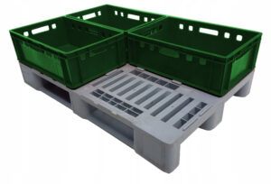 To rozwiązanie stworzone z myślą o branży spożywczej i przemyśle spożywczym – gładkie powierzchnie ułatwiają utrzymanie najwyższego poziomu czystości, a konstrukcja zachowuje stabilność kształtu nawet przy intensywnym użytkowaniu. Jest kompatybilna z półpaletą H2 oraz wszystkimi skrzynkami Euro (E1–E4), co docenia wielu klientów, szczególnie przy obsłudze produktów spożywczych i produktów żywnościowych.